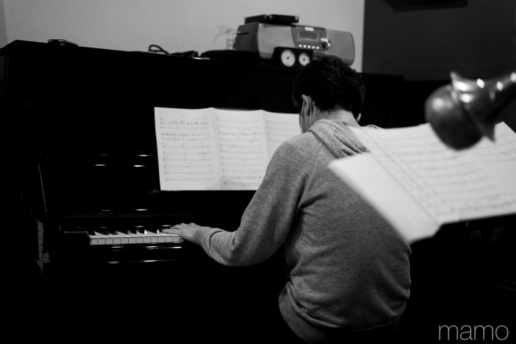 開催を約10日後に控え、中嶋さんの呼びかけで東京都内でリハが行われました。石岡知華さんのアイデアで企画した初のコラボ。andropの楽曲が類家さん、中嶋さんの伴奏やソロ演奏によってどう変わるのか予想がつきませんでした。